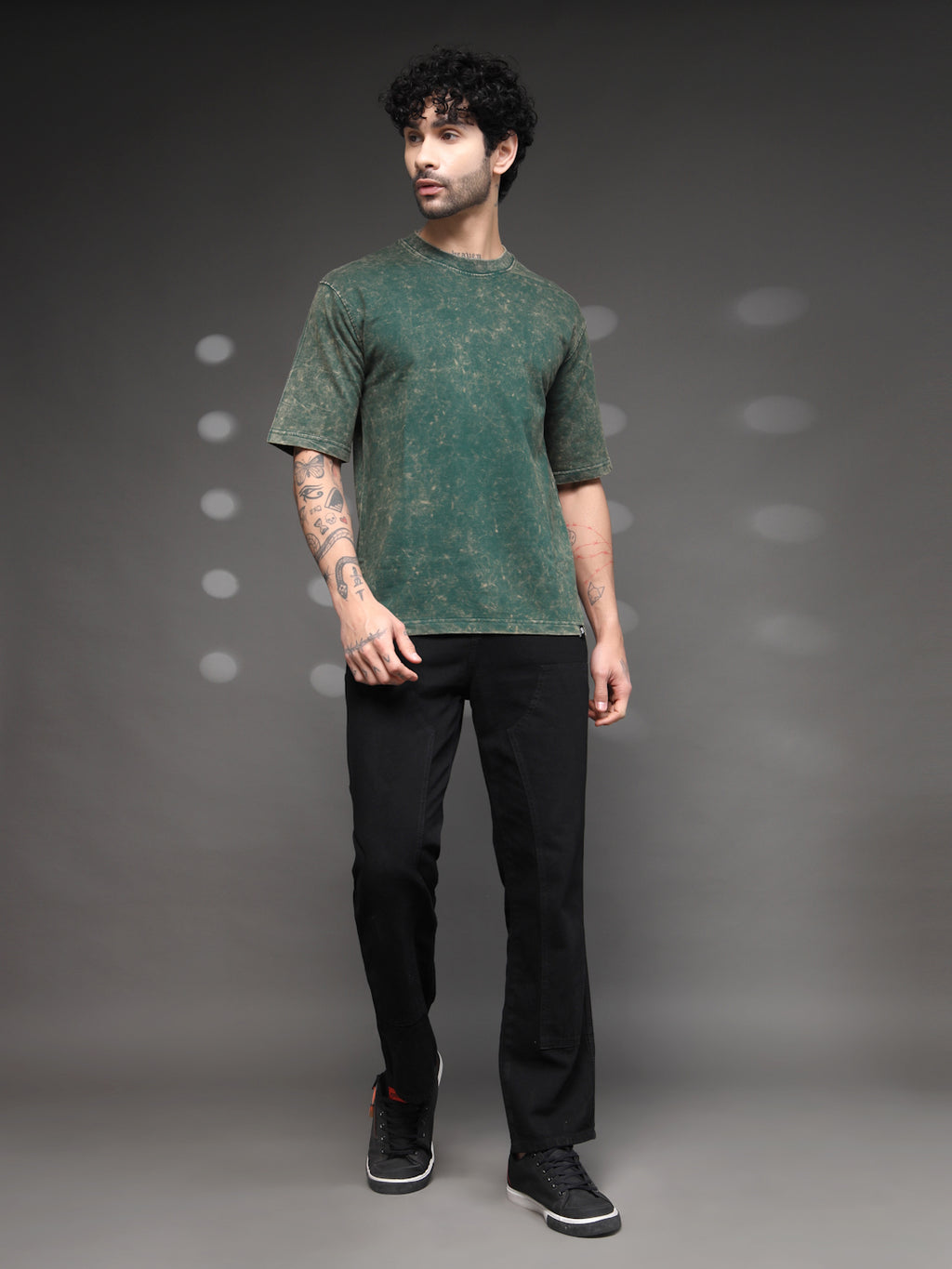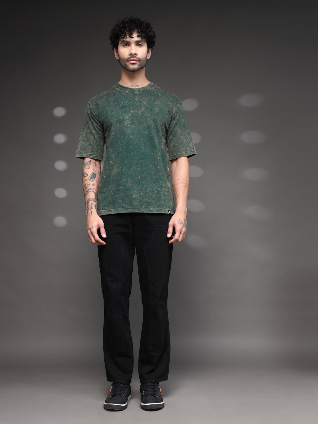 Level up your casual wardrobe with our Bottle Green Wash T-Shirt. Crafted from premium cotton for ultimate breathability, this tee features a unique, high-contrast wahsed tie dye effect in shades of Bottle Green Designed with a classic crew neck and a relaxed fit, it’s the perfect statement piece for a modern streetwear look. Pair it with black denim or cargo pants to let the bold pattern stand out.